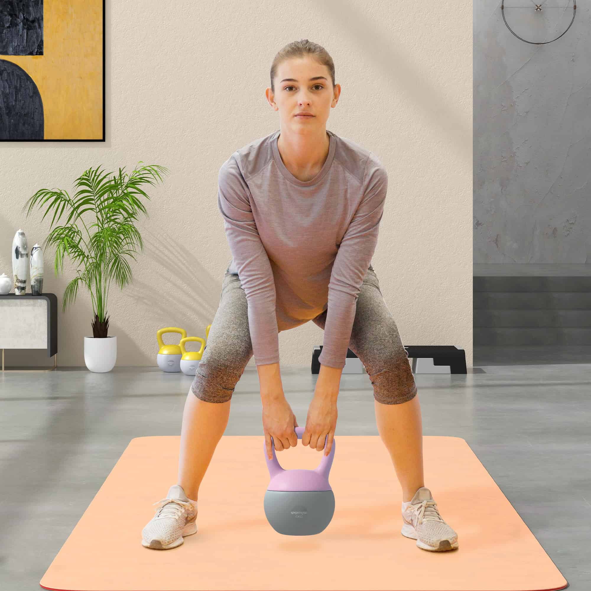 Soft Kettlebell, 6kg Kettle Bell with Non-Slip Handle for Home Gym Weight Lifting and Strength Training, Purple and Grey